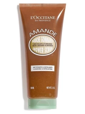 Enriched with almond oil and crushed shells, the Almond Shower Scrub melts into the skin to cleanse softly and exfoliate to remove impurities and dead cells.