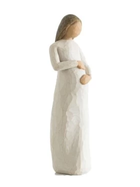 Willow Tree is an intimate, personal line of hand carved sculptures. Each represents a quality or sentiment that helps us feel close to others, heal wounds, or treasure relationships to living things. Expression is revealed through gestures only… a tilt of the head, placement of the hands, a turn of the body. Each piece is cast from the artist’s (Susan Lordi) original carving and then painted by hand. Susan says, “I try to keep the interpretation of Willow Tree open. I hope this makes it more personal, and allows the viewer to decide its meaning.”