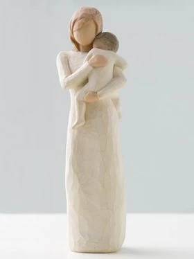 Willow Tree is an intimate, personal line of hand carved sculptures. Each represents a quality or sentiment that helps us feel close to others, heal wounds, or treasure relationships to living things. Expression is revealed through gestures only… a tilt of the head, placement of the hands, a turn of the body. Each piece is cast from the artist’s (Susan Lordi) original carving and then painted by hand. Susan says, “I try to keep the interpretation of Willow Tree open. I hope this makes it more personal, and allows the viewer to decide its meaning.”