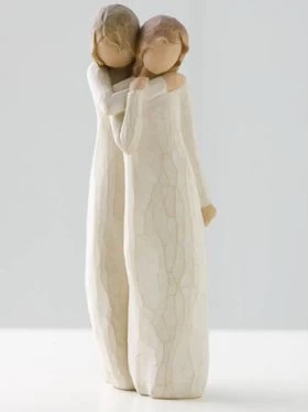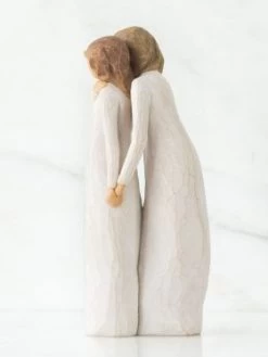 Willow Tree is an intimate, personal line of hand carved sculptures. Each represents a quality or sentiment that helps us feel close to others, heal wounds, or treasure relationships to living things. Expression is revealed through gestures only… a tilt of the head, placement of the hands, a turn of the body. Each piece is cast from the artist’s (Susan Lordi) original carving and then painted by hand. Susan says, “I try to keep the interpretation of Willow Tree open. I hope this makes it more personal, and allows the viewer to decide its meaning.”