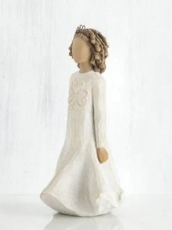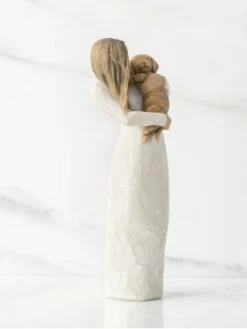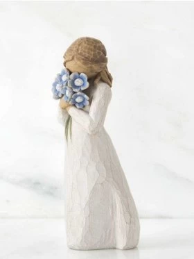 Willow Tree is an intimate, personal line of hand carved sculptures. Each represents a quality or sentiment that helps us feel close to others, heal wounds, or treasure relationships to living things. Expression is revealed through gestures only… a tilt of the head, placement of the hands, a turn of the body. Each piece is cast from the artist’s (Susan Lordi) original carving and then painted by hand. Susan says, “I try to keep the interpretation of Willow Tree open. I hope this makes it more personal, and allows the viewer to decide its meaning.”