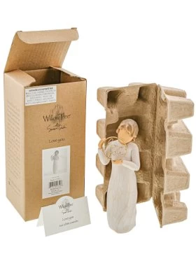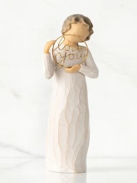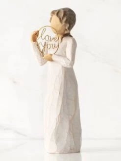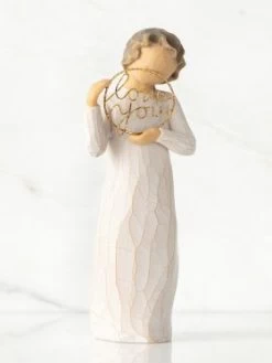 Two small words, said frequently in parting, which mean so much! This figure displays your feelings—on the record—as a visible reminder to the people in your life to whom you can’t say it enough. To your children, your spouse, your Valentine, your friends… Just a little reminder!