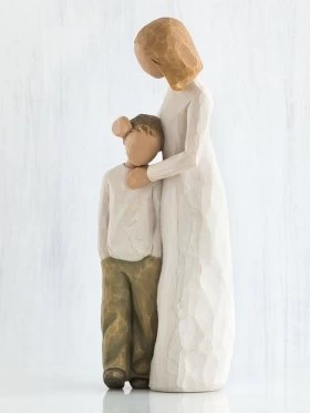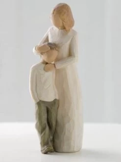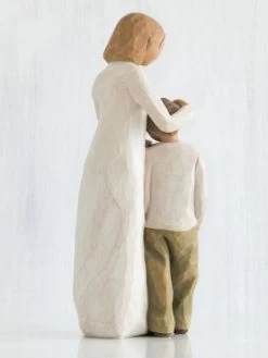 Willow Tree is an intimate, personal line of hand carved sculptures. Each represents a quality or sentiment that helps us feel close to others, heal wounds, or treasure relationships to living things. Expression is revealed through gestures only… a tilt of the head, placement of the hands, a turn of the body. Each piece is cast from the artist’s (Susan Lordi) original carving and then painted by hand. Susan says, “I try to keep the interpretation of Willow Tree open. I hope this makes it more personal, and allows the viewer to decide its meaning.”