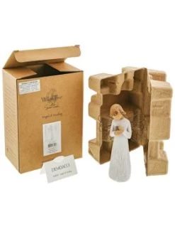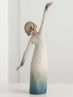 Willow Tree is an intimate, personal line of hand carved sculptures. Each represents a quality or sentiment that helps us feel close to others, heal wounds, or treasure relationships to living things. Expression is revealed through gestures only… a tilt of the head, placement of the hands, a turn of the body. Each piece is cast from the artist’s (Susan Lordi) original carving and then painted by hand. Susan says, “I try to keep the interpretation of Willow Tree open. I hope this makes it more personal, and allows the viewer to decide its meaning.”