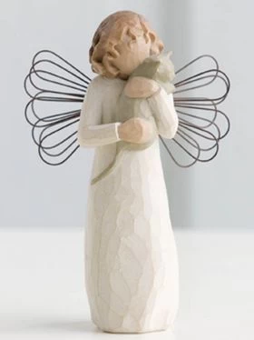 Willow Tree is an intimate, personal line of hand carved sculptures. Each represents a quality or sentiment that helps us feel close to others, heal wounds, or treasure relationships to living things. Expression is revealed through gestures only… a tilt of the head, placement of the hands, a turn of the body. Each piece is cast from the artist’s (Susan Lordi) original carving and then painted by hand. Susan says, “I try to keep the interpretation of Willow Tree open. I hope this makes it more personal, and allows the viewer to decide its meaning.”