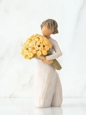 This figure is available with pink roses or yellow roses (shown).