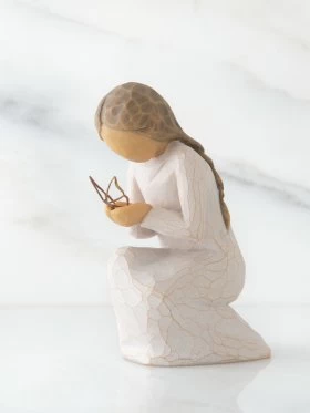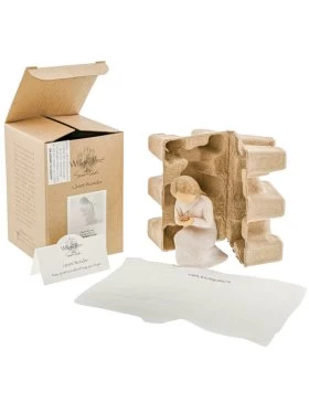 This figure can be a little reminder to yourself, or someone close to you, of revelations and discoveries found in quiet moments when we are still and present. Perhaps a best wishes gift to a graduate about to start a new venture… or a hopeful piece for one facing a major decision. Or a reminder to marvel at the miracle of butterflies in nature! Hand-painted resin figure with gold leaf wire butterfly. 9.5cm high.